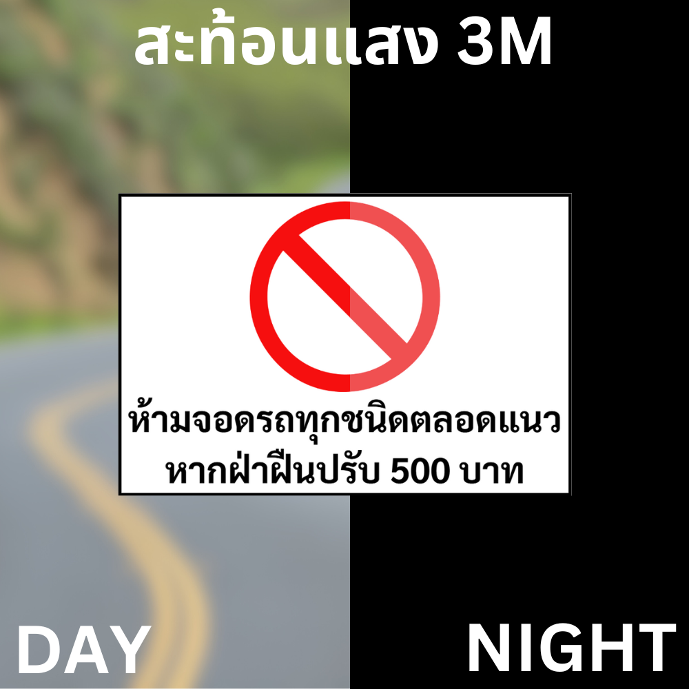 ป้ายห้ามจอดรถทุกชนิดตลอดแนว สะท้อนแสง 3M