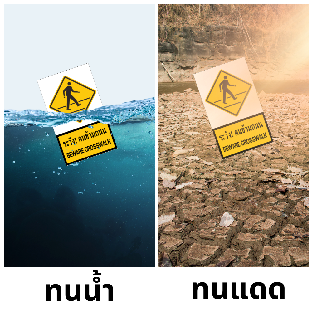 • ไม่เป็นสนิม : วัสดุป้าย ทำจากอลูมิเนียม หรือ เหล็กซิ้งค์ มีความทนทานสูงไม่เป็นสนิม