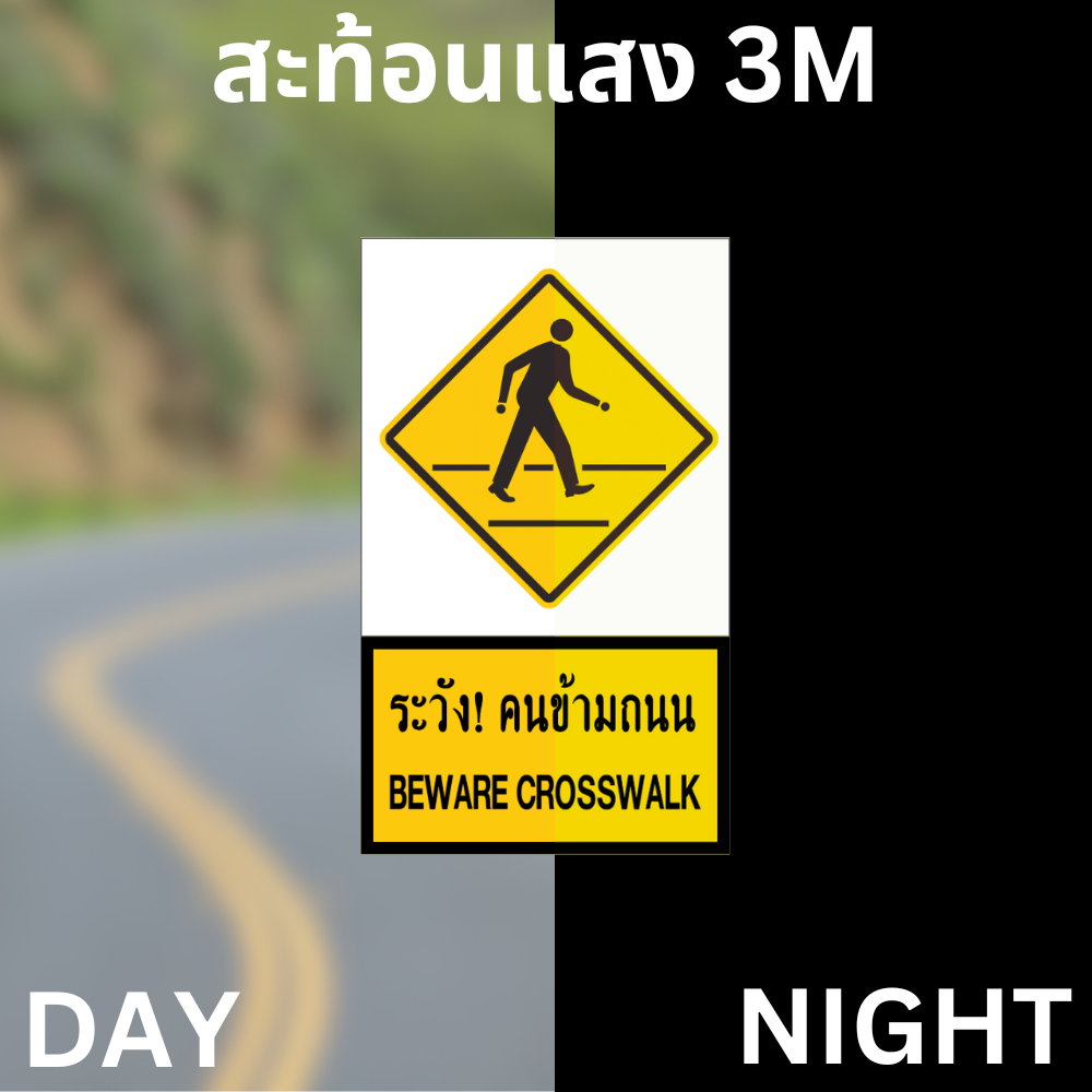 ป้ายระวังคนข้ามถนน BEWARE CROSSWALK สะท้อนแสง 3M