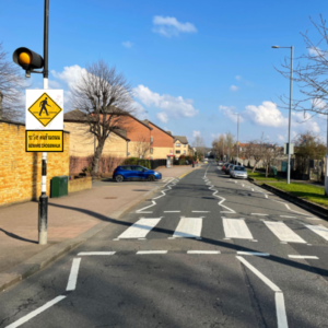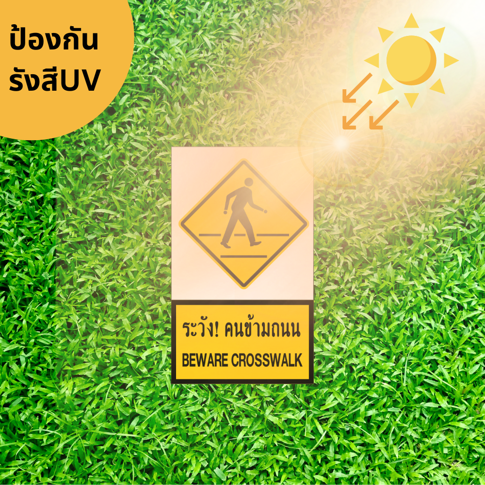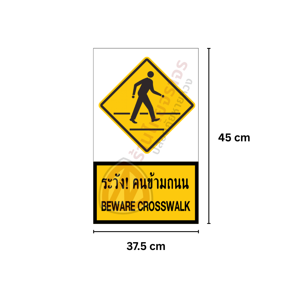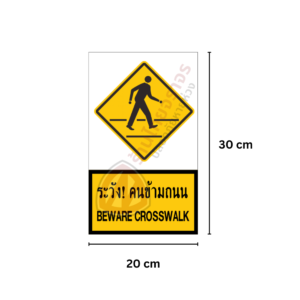 ป้ายระวังคนข้ามถนน BEWARE CROSSWALK สะท้อนแสง 3 M อายุการใช้งานยาวนานกว่า 5 ปี!