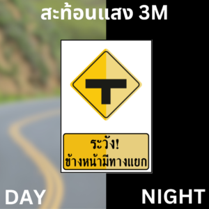 ป้ายระวัง!ข้างหน้ามีทางแยก สะท้อนแสง 3M