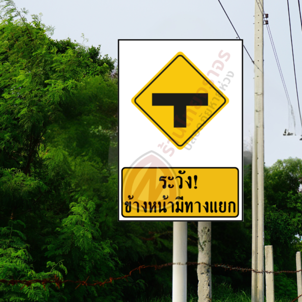 ป้ายระวัง!ข้างหน้ามีทางแยก สะท้อนแสง 3 M อายุการใช้งานยาวนานกว่า 5 ปี!