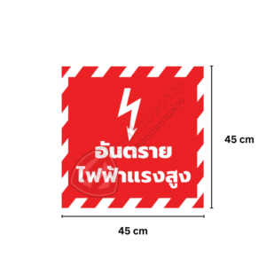 ป้ายอันตรายไฟฟ้าแรงสูง ขนาด 45×45 Cm. สะท้อนแสง 3M