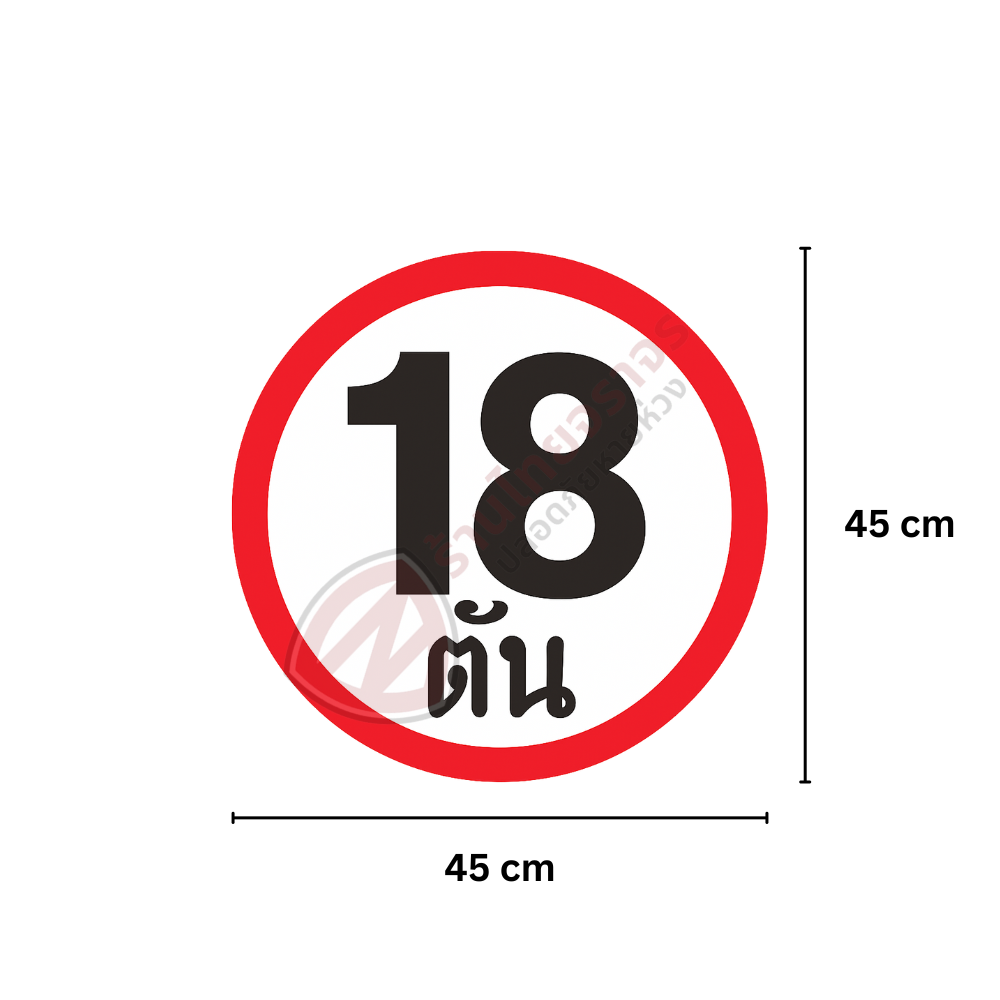 ป้ายห้ามรถน้ำหนักเกิน18ตันผ่าน ขนาด 45×45 Cm. สะท้อนแสง 3M