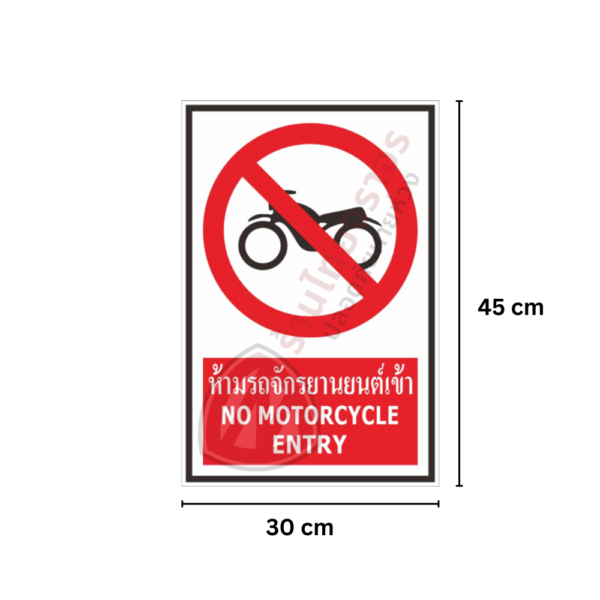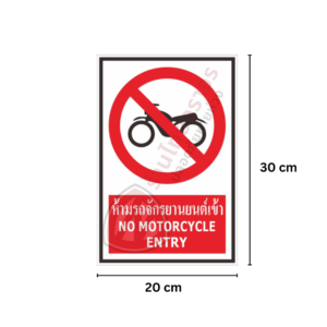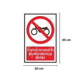 ป้ายห้ามรถจักรยานยนต์เข้า สะท้อนแสง 3 M อายุการใช้งานยาวนานกว่า 5 ปี!